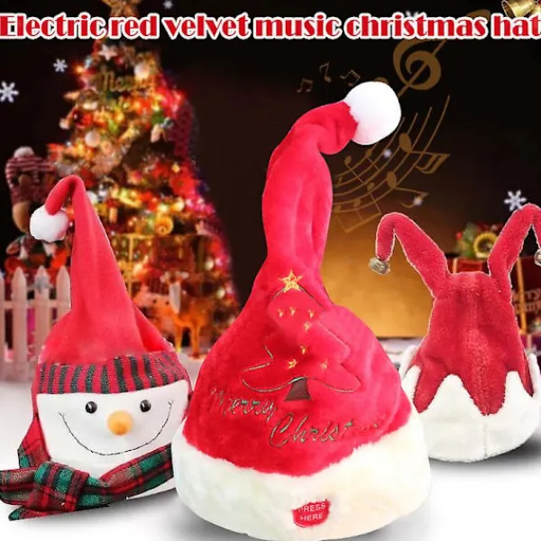 Funktioner:r1. Unik nyhet och intressant sjungande och dansande elektrisk julhatt, du kommer att gilla den.r2. Tryck på hatten för att spela musik, den här hatten kommer att liva upp vilken julmiljö som helst och få ett leende på allas läppar.r3. Den kommer att spela en låt och snäppa fram och tillbaka till musiken.r4. Bästa julklapparna: Musiktema julgransprydnader, unika julklappar till barn/mamma/pappa/pojkar/flickor/barn.r5. Tillverkad av kort plysch, mjuk och bekväm att bära.rrObservera:r1. Den faktiska färgen kan skilja sig något från bilden på grund av olika bildskärms- och ljuseffekter. Vänligen tillåt mindre avvikelser på grund av manuell mätning.r2. Batteriet ingår inte.rrSpecifikation:rTyp: Elektrisk TomteluvarMaterial: kort plyschrStorlek: höjd – 38 cm, diameter – 20 cmrBatteri: 3 * AA-batteri (ingår ej i paketet) inkluderar: 1 x Elektrisk Tomteluva