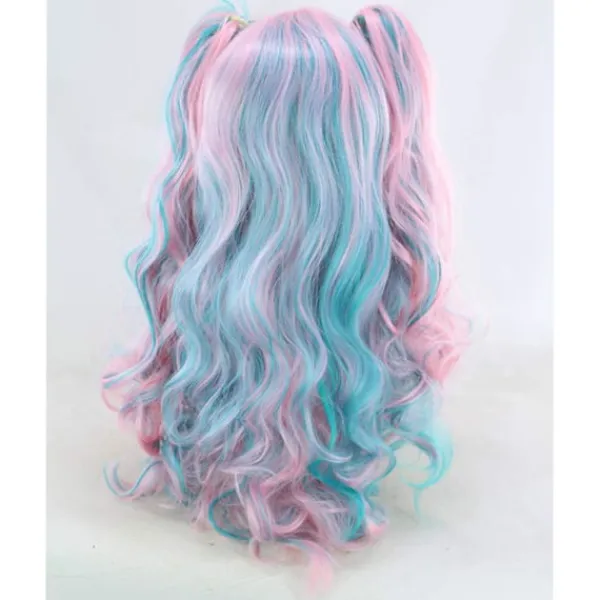 Falska lockar lockiga vågiga peruker Cosplay fest peruk silke peruker hår peruker full Wings hår realistiska peruker två hästsvans peruk
