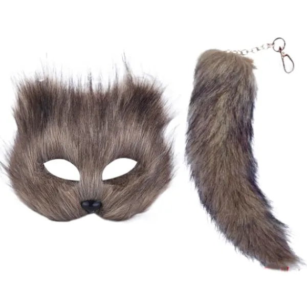 Förpackningen innehåller, faux pälsrävar svans och Katter vargmask