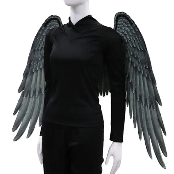 Funktioner: *Material: fiberduk, inte riktiga fjädrar, vingarna är inte helt svarta, med lite silvergrått. *Vingar med tråd kan vikas, produkten är vikt och packad, kan ha små veck, kan strykas före användning. *Storlek: 75*105 cm (fullt utfällda). *Vingmönstret är tryckt, inte riktiga fjädrar. *Elastiska axelband, lätta att bära, passar de flesta tonåringar och vuxna. Observera: 1. Den faktiska färgen kan skilja sig något från bilden på grund av olika bildskärms- och ljuseffekter. 2. Vänligen tillåt 1-3 cm avvikelse på grund av manuell mätning. Beskrivning: Material: Fiberduk Mått: 105*45*75cm Paketlista: 1*Änglavingar
