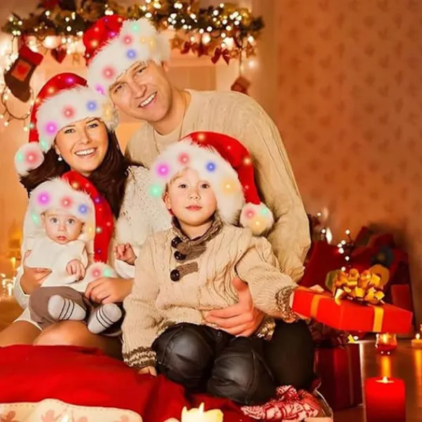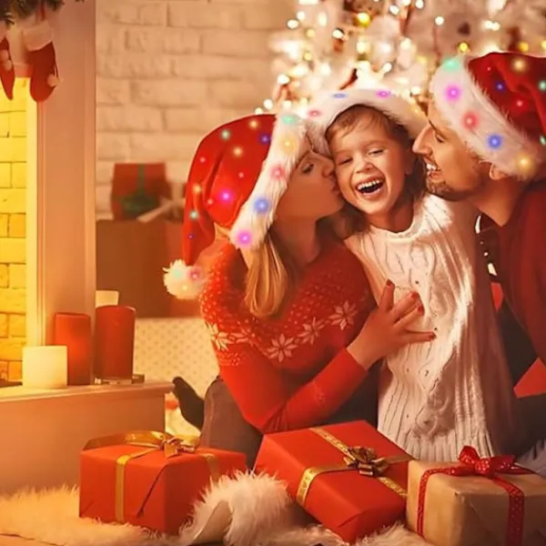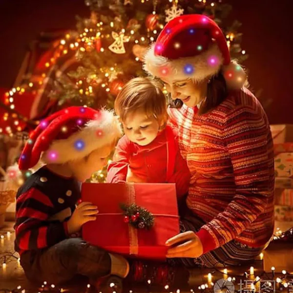 Lysande Julhatt: Insidan av julhatten är utrustad med 20 LED-lampor i olika färger. Den glödande julhatten stöder tre belysningslägen (långsam blinkning, snabb blinkning och fast konstant ljus), och du kan justera den efter olika stämningar eller scener för att njuta av dess värme och ljus, vilket gör att du sticker ut i mängden på julsammankomster