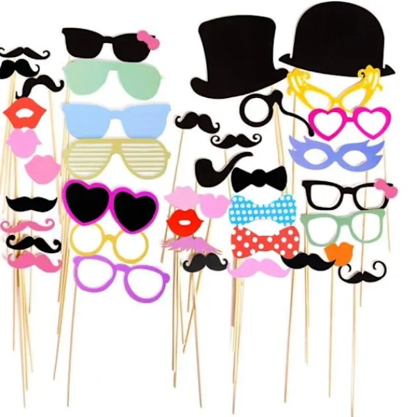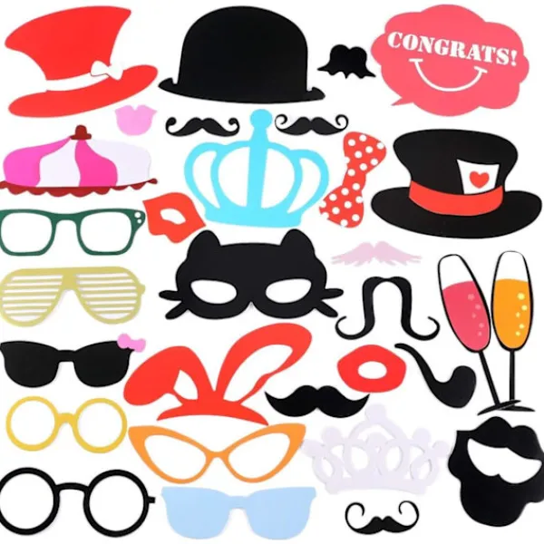 Mer Kul: enkel och lätt dekoration för att skapa mycket kul med dina vänner. Få dina motiv att slappna av; Rekvisita ger motiven en ursäkt att slappna av, vara kreativa och ha kul. Med denna fotomask kan du lägga till en rolig aktivitet och ta minnesvärda bilder under din fest.