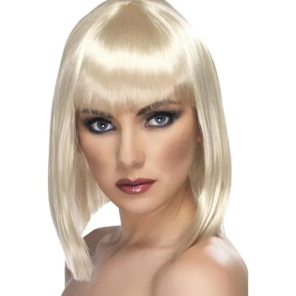 Inkluderar glamourperuk, kort blont hår, rakt hår och lugg