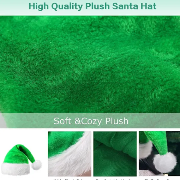 【Tillverkad av vacker grön och tjock sammet】 Denna julhatt är tillverkad av högdensitetssammet, mjuk, behaglig att röra vid och bekväm att bära. Denna högkvalitativa sammetsjulhatt är ett utmärkt val för den kommande julen.
