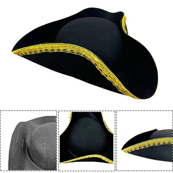 Guld-kantad pirathatt för Halloween-scenföreställningar, Captain Jack-hatt