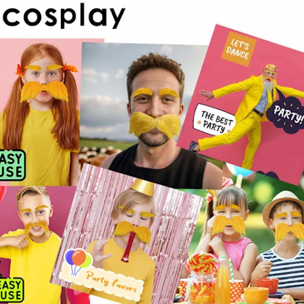 Förvandlas till en Ikonisk Karaktär: Bli omedelbart en charmig och oförglömlig karaktär med vårt högkvalitativa fluffiga orange-gula skägg- och ögonbrynset.