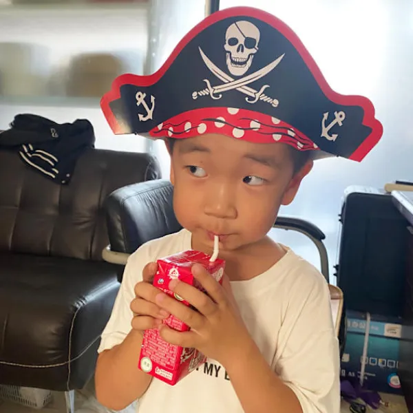 Mått: Varje pirath hatt mäter ungefär 14 tum; använd bara de 2 självhäftande remsorna för att justera; en storlek passar de flesta barn och vuxna