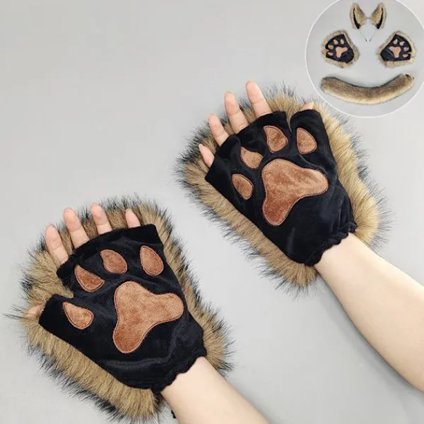 Halloween Party Varulv Öra Pannband, Varg Öra Pannband, Tasshandskar och Varg Svans Set