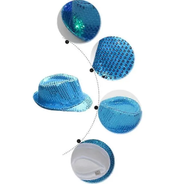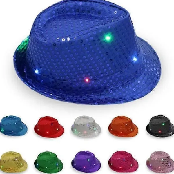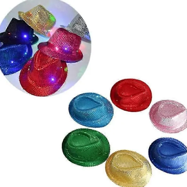 LED Lysande Jazzhatt Scenrekvisita Flash Cowboyhattar med Glitter Paljetter Dekor för Fest