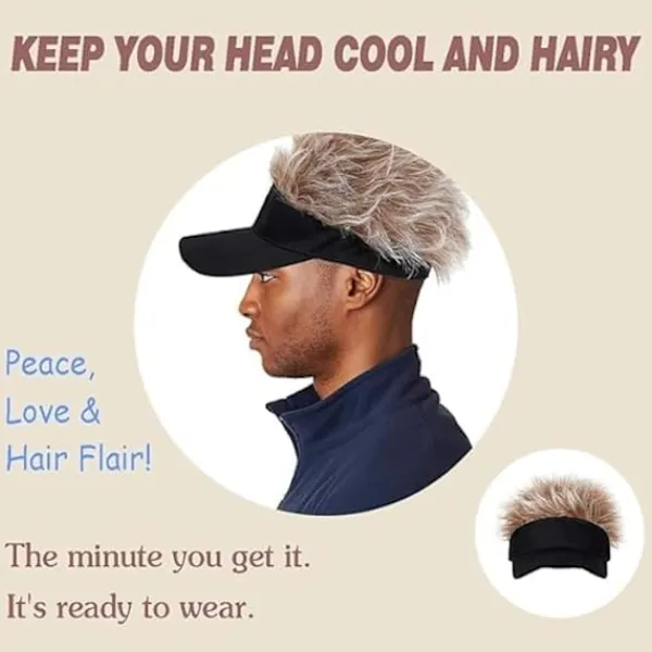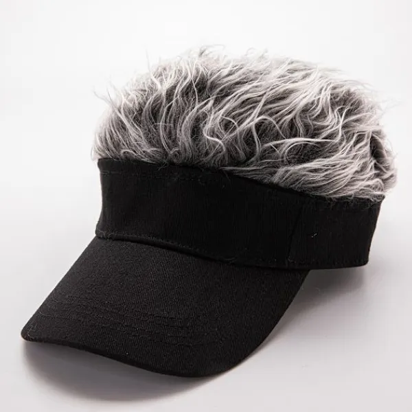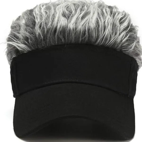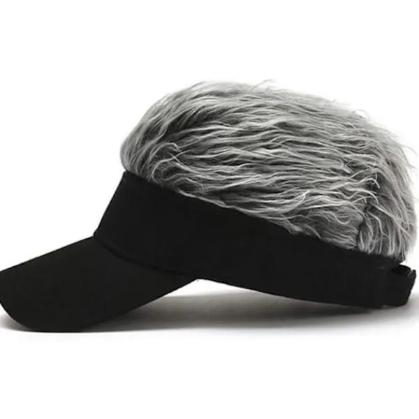 Detta visir med hår för män är ett roligt och originellt sätt att ändra ditt utseende direkt. Perukerna som är fästa på visiret ser naturliga och verkliga ut, vilket gör det till en intressant present till din make eller någon med en flintskallig.