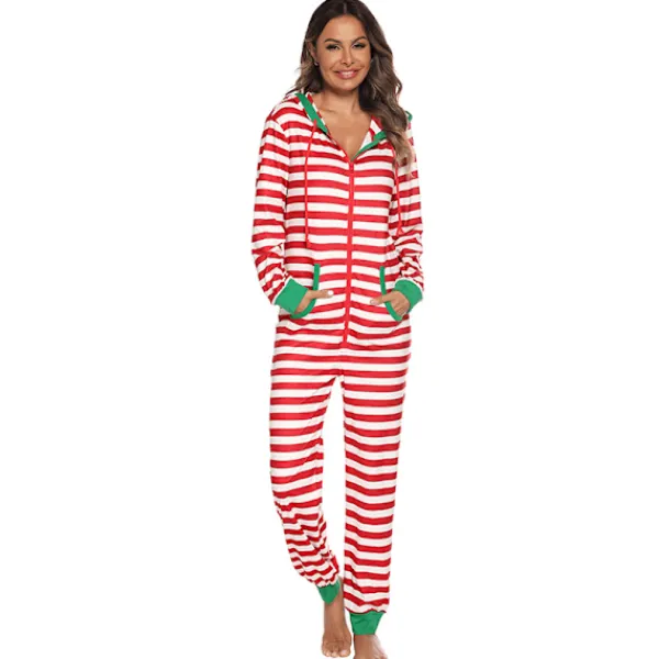 Onesies vuxen julpyjamas design: Dessa julpyjamas är mjuka, lätta, lite stretchiga och bekväma att bära, allt från sömmarna till fållen är skickligt gjort, långa ärmar, rund hals, blixtlås framtill för enkel på- och avtagning. Julkläder för kvinnor består av söta tryck inklusive ränder, älg, jultomten etc., oavsett om du sover eller slappnar av, dessa julpyjamas ger dig mysig komfort hela dagen.