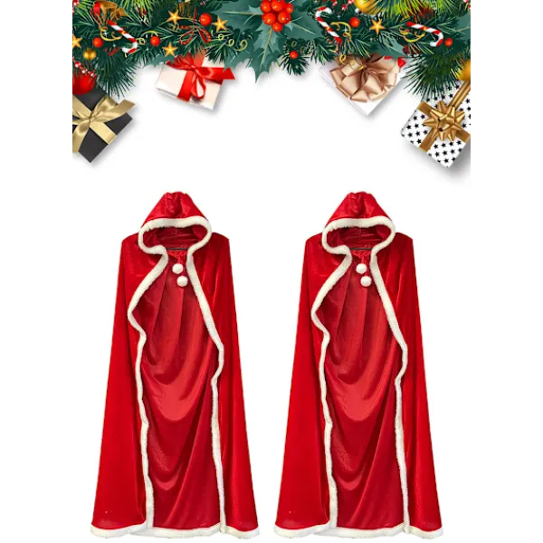 LÄTT ATT TA PÅ OCH AV – En-delad designad lång capa jul cosplay kostym kommer att göra dig iögonfallande och charmig på festen. Var redo att vara fru Claus på julpartyn med denna underbara kappa.