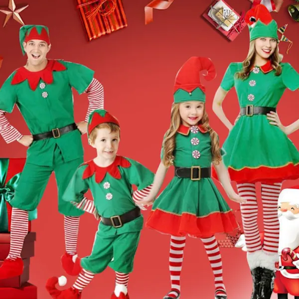 Material: Jultomte-dräkter är gjorda av högkvalitativ polyesterfiber för att skydda huden på hela din familj. Våra andningsbara kläder hjälper dina familjer att röra sig bekvämt utan svettproblem.