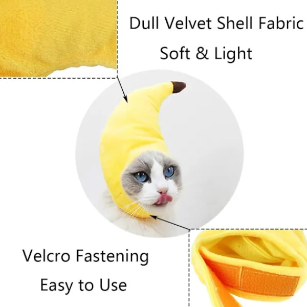 Mjuka material: Husdjurets Halloween-bananhuvudbonad är tillverkad av mjukt och lätt plyschmaterial för hand, vilket är ofarligt för husdjur och bekymmersfritt att använda. Det finns inget tryck för dina husdjur när de bär dem.