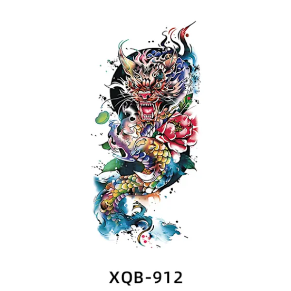 Realistiskt utseende: Denna tatueringsärm är tillverkad med högkvalitativt bläck och detaljerade detaljer och efterliknar utseendet på äkta bläck, vilket ger ett övertygande och iögonfallande utseende.