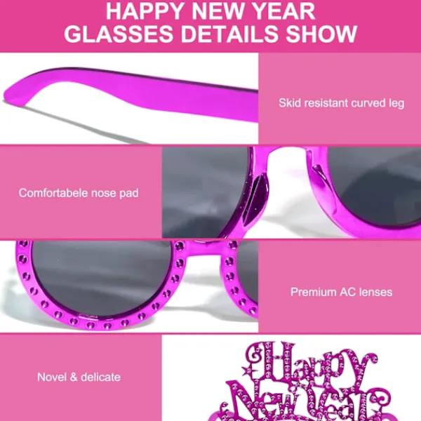 Festlig design: Designad med ’Happy New Year’ på glasögonen, gör elektropläteringsprocessen och det färgade diamantpulvret dessa nyårsglasögon extra speciella och attraktiva, vilket ger mer festlig atmosfär och roligt till din nyårsfest