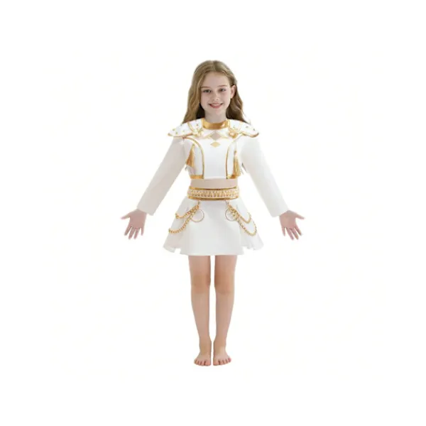 Detta är en cosplay-outfit inspirerad av Rumi från K-POP-tjejgruppen, som perfekt fångar den bländande scenpersonligheten hos en K-pop-tjejgrupp! Med en vit bas med guldkanter utstrålar den diskret lyx och är en blickfångare för cosplay, scenframträdanden och K-pop-danstäckningar.