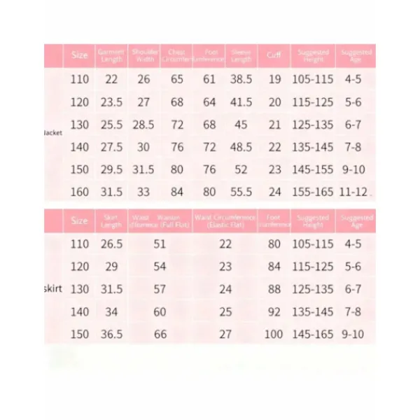 | Size | 110cm, 120cm, 130cm, 140cm, 150cm, 160cm |