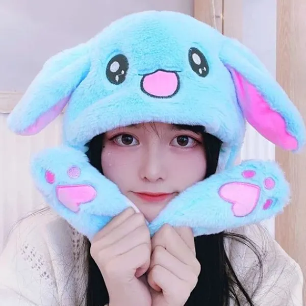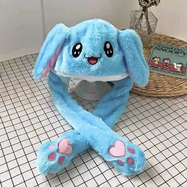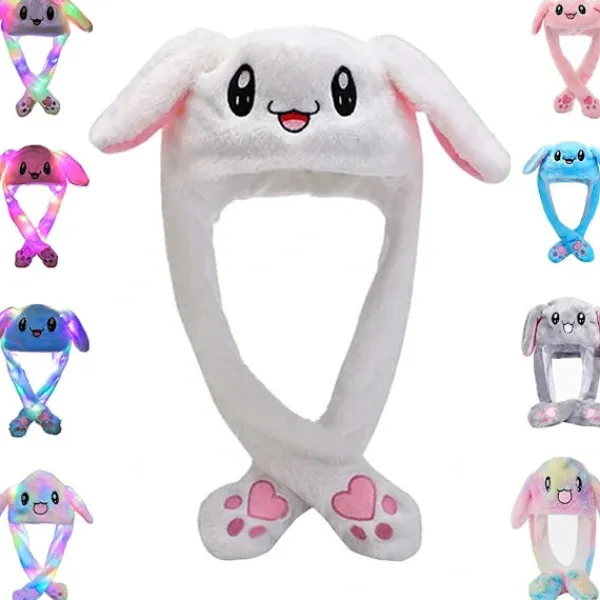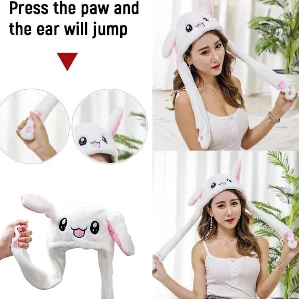 [Mössa med rörliga kaninöron] Den här kaninmössans öron är rörliga, när du trycker på tassen kommer örat på samma sida att röra sig upp och ner. Söt och rolig, och kommer att ge barnet fullt av sötma och glädje året runt!! [Överlägsen kvalitet] Den hoppande kaninmössan är gjord av högkvalitativt kort plyschmaterial, vilket gör att den ser ut som en söt plyschkanin, bekväm att röra vid och bära.