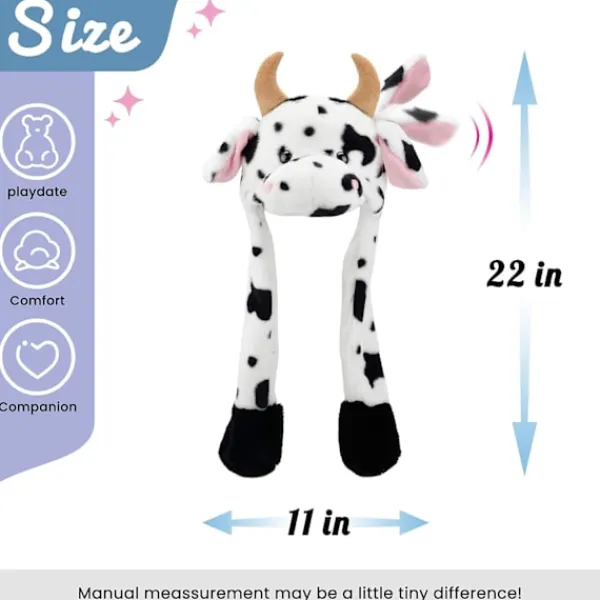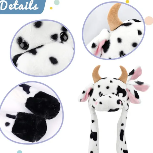 Var en glad ko i stil: Denna fantastiska kohatt är gjord av sammetslent plyschmaterial. Djuröronen är rörliga, den kan vika öronen! När du trycker på tassen kommer örat på samma sida att röra sig upp och ner, vilket är väldigt roligt. Perfekt att bära för att ta foton och videor, i kombination med din favoritmusik.