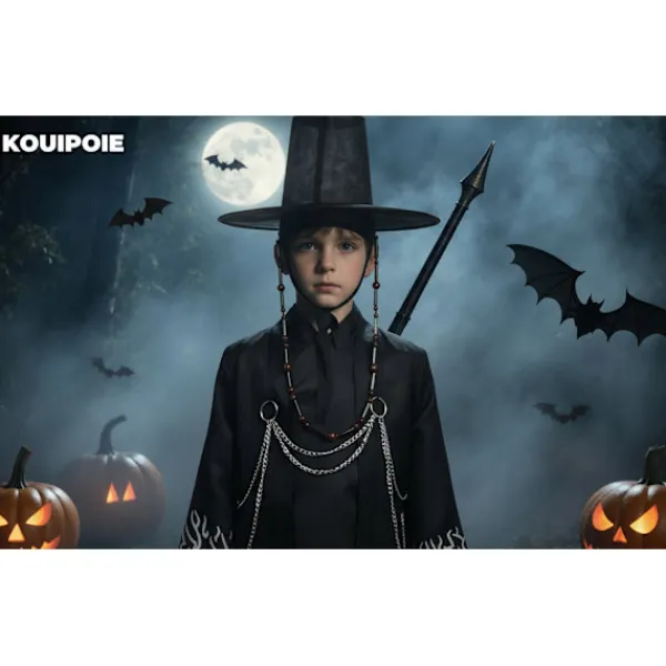 Saja Jinu Cosplay Design: Inspirerad av den ikoniska Kpop Hunters-skurken, har denna Saja Jinu cosplay-kostym en svart flammönstrad kappa, en traditionell hatt, dekorativa kedjor och detaljerade tillbehör för den perfekta looken för demonen Saja.