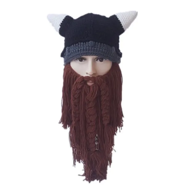 Maskhatt med skägg, ullperuk och romersk riddare hjälm stickad hatt