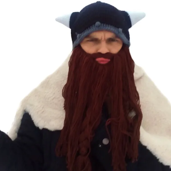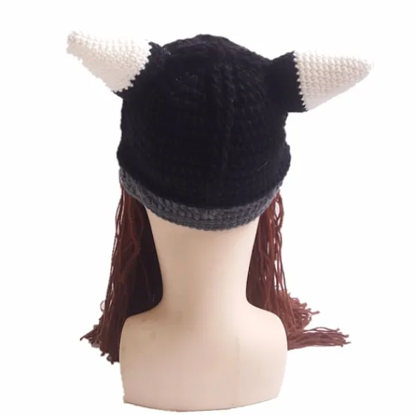 Färgglad stickad perukmössa, vandrande vild vikingahornskägg och romersk riddare elmet cosplay bean