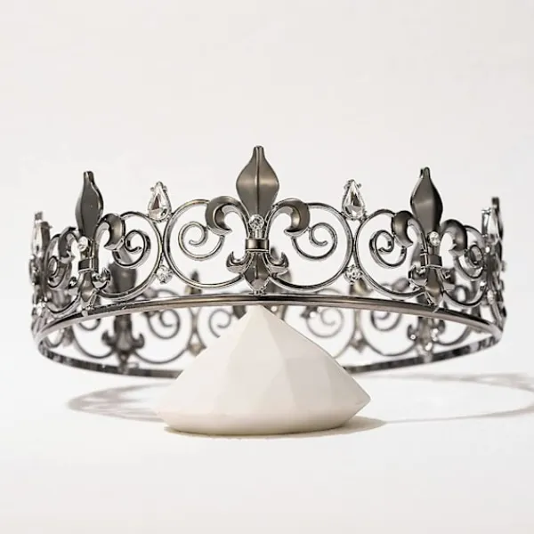 Kunglig kungakrona för män – Metallprinskronor, fullrunda födelsedagsfest hattar – Svart
