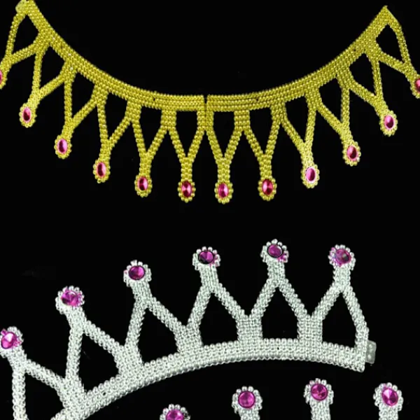 R-tum: Phoenix krona längd 50 centimeter * höjd 8 centimeter, nio diamant krona längd 60 centimeter * höjd 11 centimeter, kung krona längd 55 centimeter * höjd 12 centimeter, kors krona längd 60 centimeter * höjd 8 centimeter, (huvudbonader kan bäras av vuxna och barn)