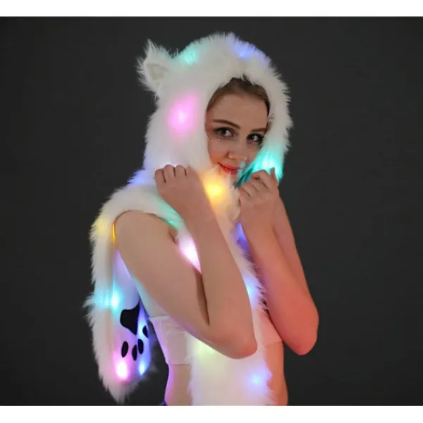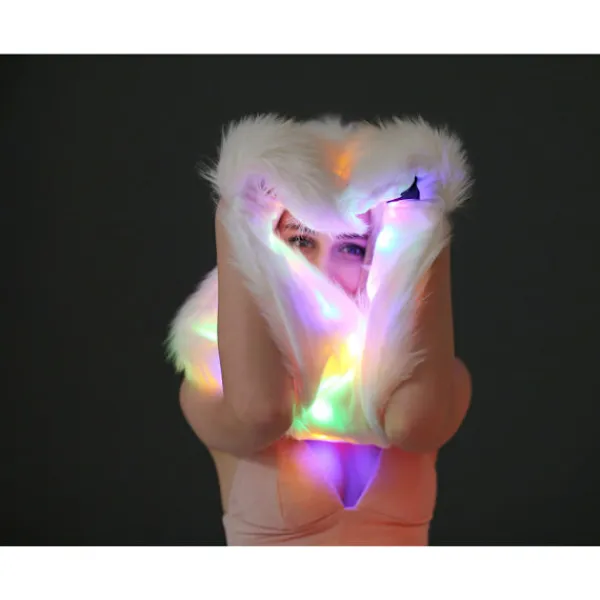 Kvinnor LED Ljus Upp Konstgjord Päls Djur Öron Luva Hatt Med Halsduk Festival TillbehörSpecifikationer: