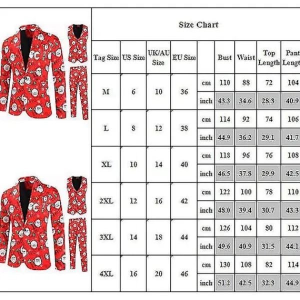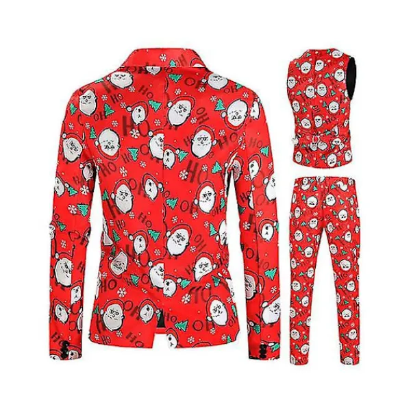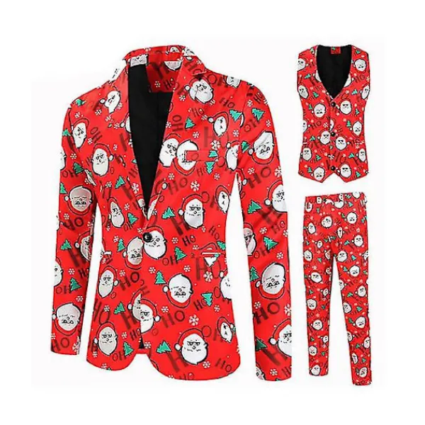 Juldräkt 3st/ Set Blazer Kostym Fancy Dress Väst Blazer Byxor Jultomten Printed Formell Klänning OutfitsSpecifikationer Paketet innehåller 1 set* Blazer Kostym Obs: På grund av olika personliga mätmetoder kommer det att finnas ett fel på 2-4 cm, vänligen förståTack för ditt stöd