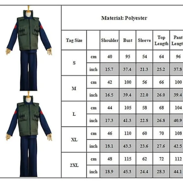 Kontrollera storlekstabellen noggrant innan du köper kostymen.