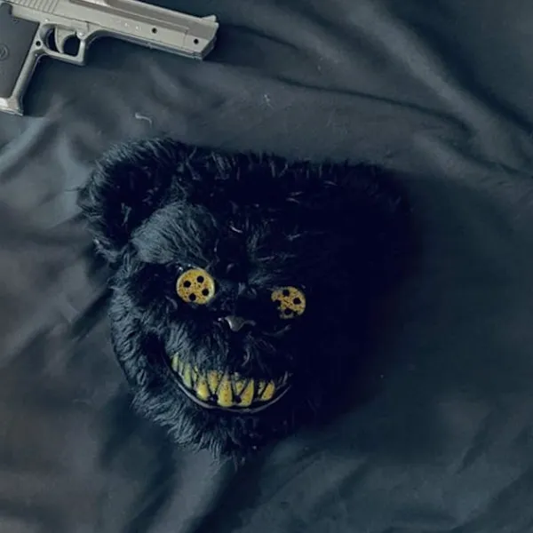 Realistisk läskig design: Långt brunt björn pälsutseende + blodig mun + gulgröna giriga ögon + långa gulgröna vassa tänder. Rika färger förstärker bilden av skräckbjörnen.
