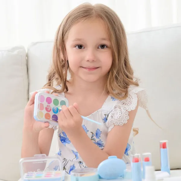 Låtsassmink för barn, sminkset för flickor, kladdfritt med förvaringslåda (kladdfritt, ingen vätska)