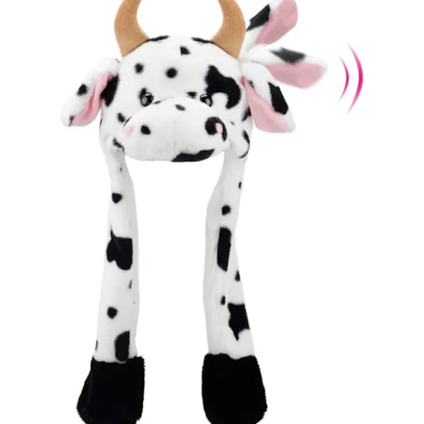 Var en glad ko med stil: Denna fantastiska ko-hatt är gjord av sammetslent plyschmaterial. Djuröronen är rörliga, den kan vika öronen! När du trycker på tassen kommer örat på samma sida att röra sig upp och ner, vilket är väldigt roligt. Perfekt att bära för att ta foton och videor, i kombination med din favoritmusik.