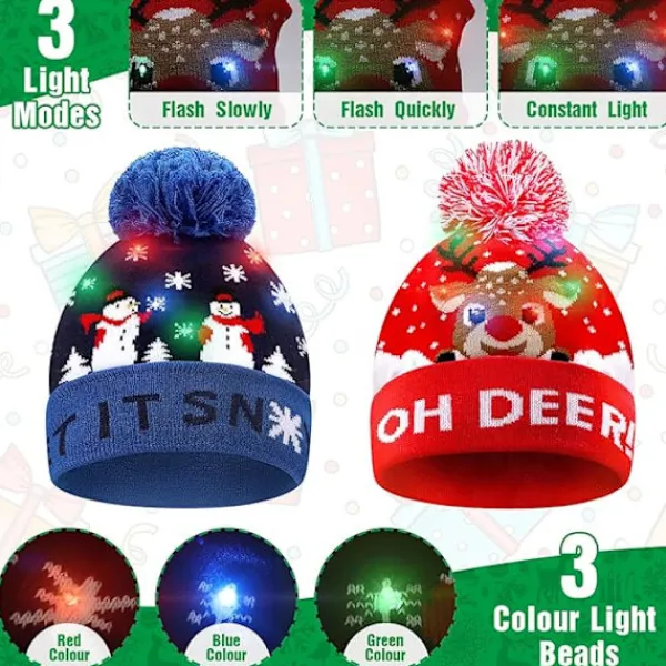 【Universal storlek】- Vår blinkande julmössa har inte bara söta mönster och LED-lampor, utan också hög elasticitet, lämplig för de flesta pojkar, flickor, män och kvinnor i olika huvudstorlekar.
