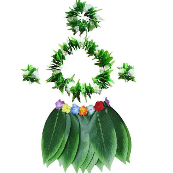 -Paketet innehåller 5 set hawaiianska festtillbehör, 1 x hula gräskjol, 2 x gröna armband, 1 x grönt halsband och 1 x hårband leis, unika Hawaii-outfits och tillbehör för din tropiska fest.