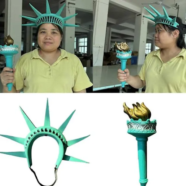Tillverkad av PVC, denna lätta huvudbonad har realistiska Frihetsgudinnans fackla och krona, vilket säkerställer att du sticker ut med historisk elegans.