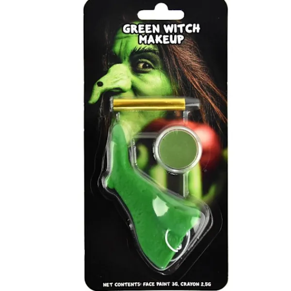 Innehåller: grön ansiktsfärg (3g), svart ansiktskrita (2,5g) och häxnäsa.