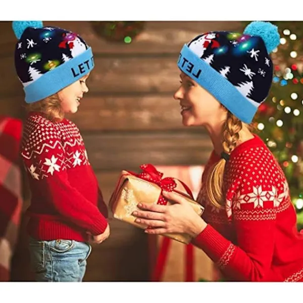 【One Size Fits All】: Varje ljusupplyst julhatts storlek är 22x25cm / 8.6×9.8in. Unisex LED vintermössa stickad mössa passar för barn, vuxna, män och kvinnor. Julens LED-stickade mössa har god elasticitet, den kommer att sitta tätt, utan att kännas för stram eller lös.