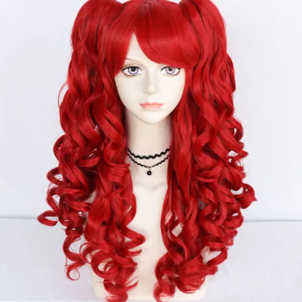 Lolita cos peruk röd dubbel tigerklämma hästsvans lång lockig anime peruk * 1