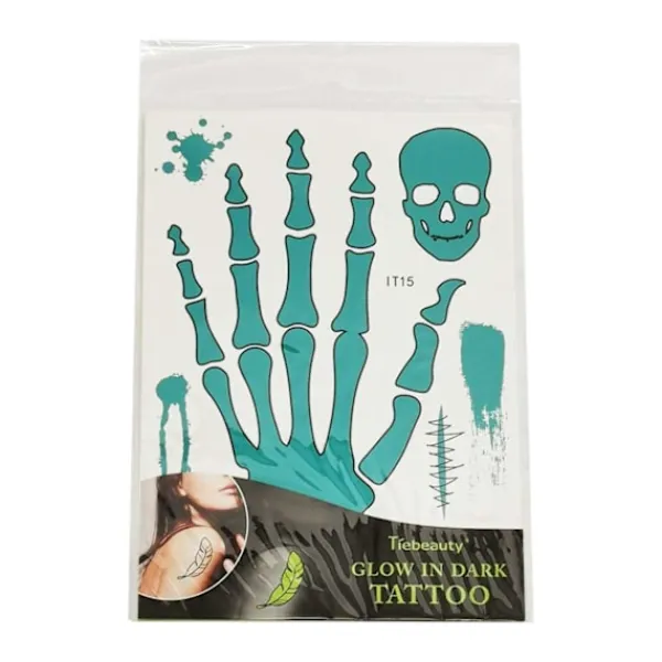 Med dessa temporära tatueringar kan du skapa unik kroppskonst som varar i upp till 4-5 dagar. Tatueringarna är självlysande och ”lyser” (gröna) i mörker. Fungerar extra bra med UV-ljus!