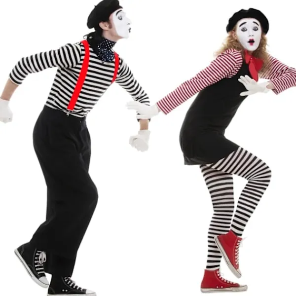 2. De klassiska mimdräkterna använder de tre ikoniska färgerna svart, vitt och rött, samt de klassiska vita handskarna och röda halsdukarna som tillbehör, så att din look kombinerar modernt mode med klassisk mim, vilket gör den mer komplett!