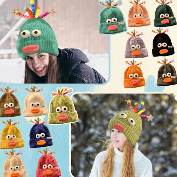 Söt och rolig stickad mössa, one size, har bra elasticitet, huvudomkrets. Cirka 22,04″-22,83″ (56-58cm), passar de flestas huvudstorlek.