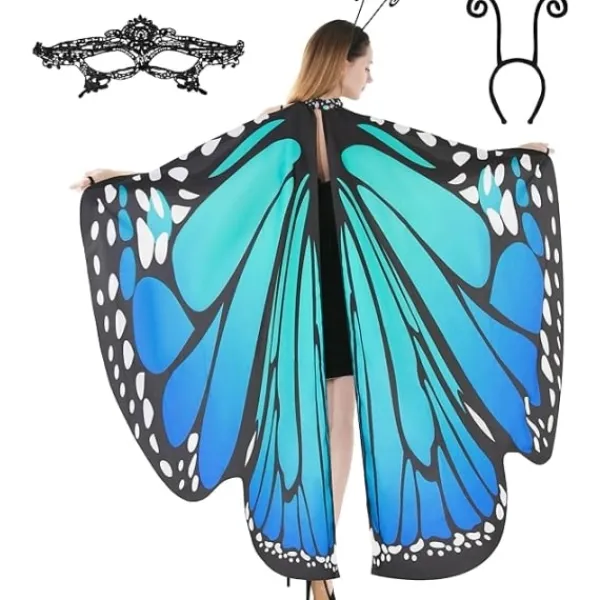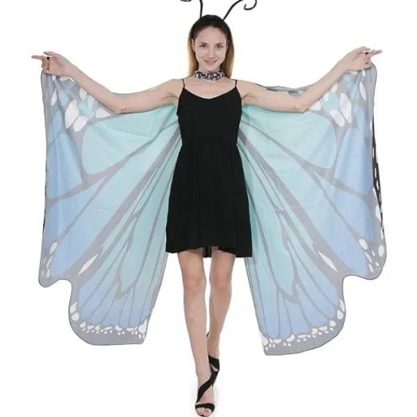 Supervärde för Halloween-rollspel, Halloween-festdräkt. Fjärilsvingar Butterfly Cape Shawl Fairy Ladies Nymph Pixie kostymtillbehör. Inkluderar ett bonus svart sammetsantenn pannband.