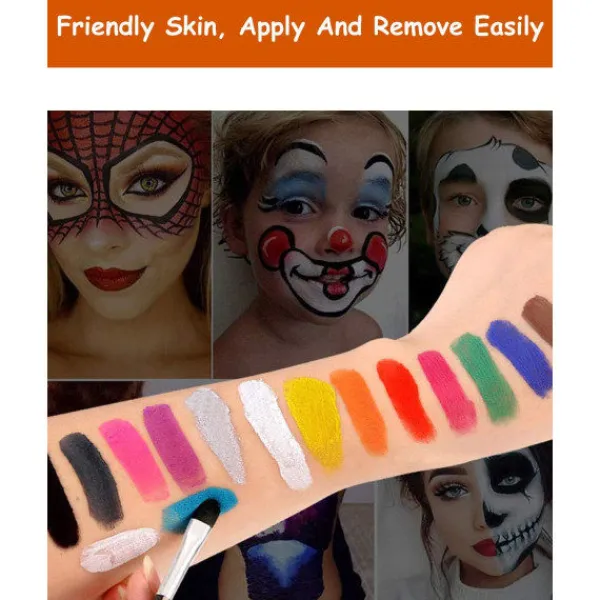 3. Lätt att applicera Du kommer att upptäcka att paletten av ansiktsfärger är enkel. Tillsätt några droppar vatten till önskad färg för att göra ytan mjuk och degig, applicera sedan smidigt på huden med borsten. Och färgerna torkar ganska snabbt och