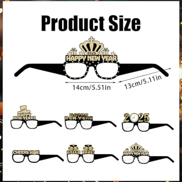 【Lätt att använda】- 2025 Gott nytt år festögonstorlek är 14*40cm, behöver öppna glasbenen, och sedan bära på ögonen, inte lätt att falla av, lätt att ta av, lätt att bära.