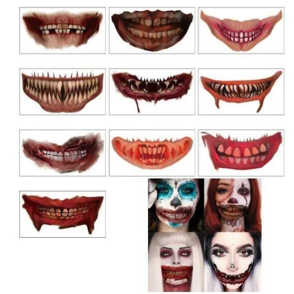 - Utforska vårt skrämmande sortiment av otäcka engångstatueringar, inklusive blodiga munnar, sår och rivsår för att ge din look det lilla extra.