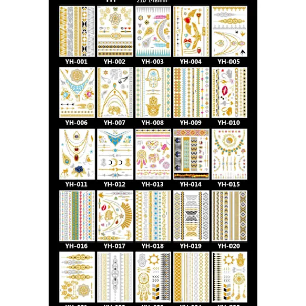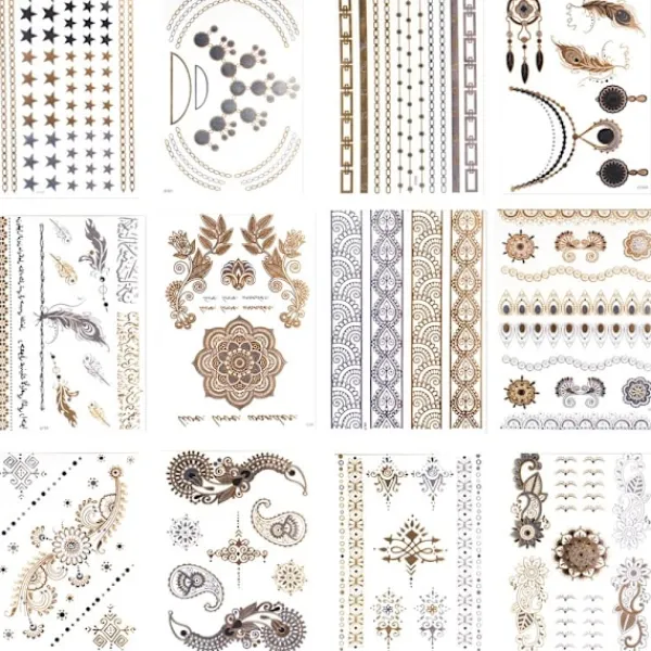 - Paketet innehåller 10 ark med metallic tatueringar i varierande stil och storlek.