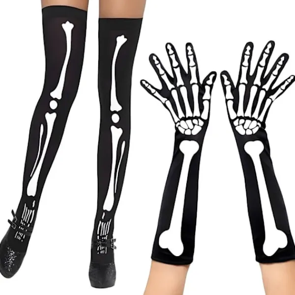 - Halloween handskar och strumpor med skrämmande skelettmotiv – ge din Halloween-dräkt det perfekta avslutande touchet!